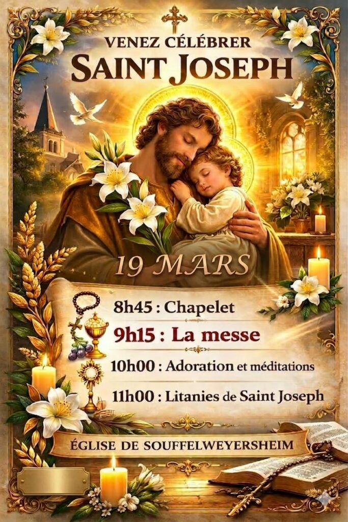 Actualités Fête de la Saint Joseph, le 19 mars mars 13, 2026 Christophe Jeunesse Laisser un commentaire