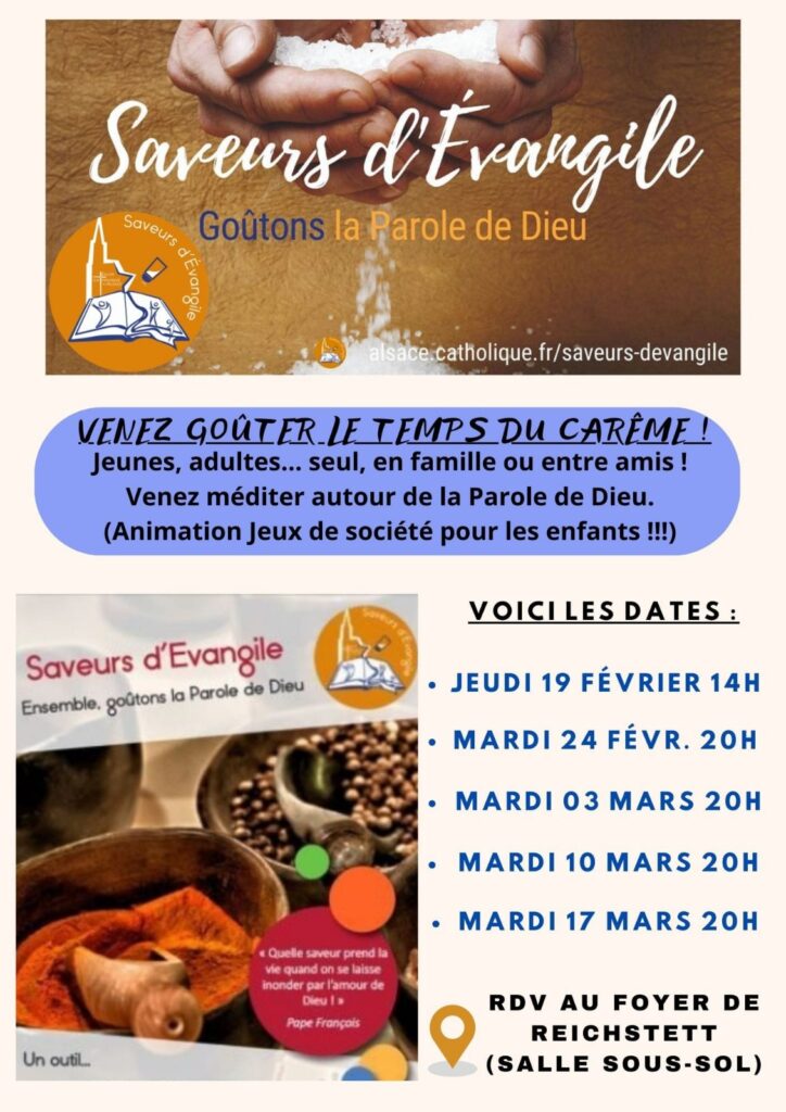 Il s’agit des Saveurs d’Évangile proposées par le diocèse de Strasbourg, au cours desquelles nous approfondirons les Évangiles des cinq dimanches du Carême.