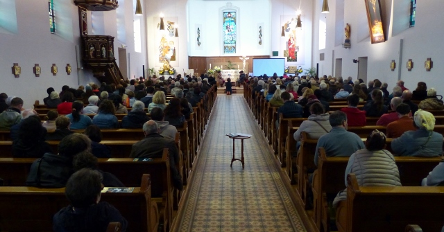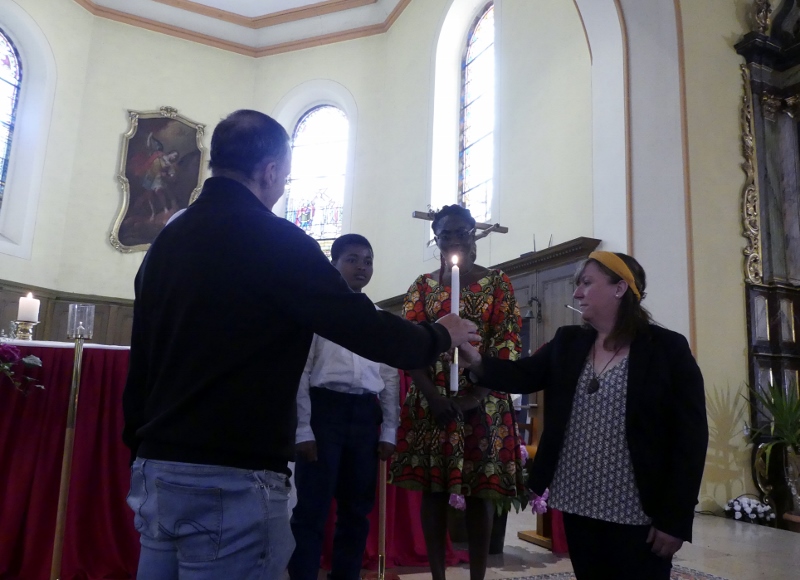 La venue en Alsace de la Fraternité Notre Dame Mère de la Lumière à l’invitation de la Fraternité Pentecôte alsacienne a débuté le vendredi soir par une veillée de consolation et de guérison en l’église Saint-Georges de Souffel. La soirée s’est ouverte par le chapelet prié en direct comme chaque soir à 19h30 et diffusé en ligne sur ndml.fr . Puis la veillée proprement dite a commencé par un temps de louange suivi d’un enseignement du président de la fraternité Alberto Maalouf et s’est poursuivie par l’exercice des charismes, principalement celui de connaissance de l’action du Seigneur dans les cœurs et les corps de certaines personnes présentes. Plusieurs sont venues témoigner qu’elles pouvaient effectuer des gestes qui leur étaient jusque là impossibles.
