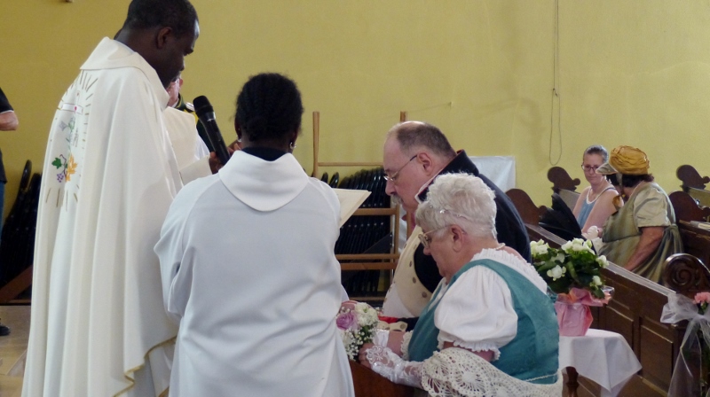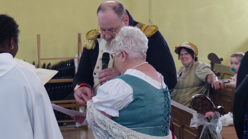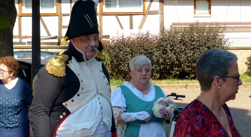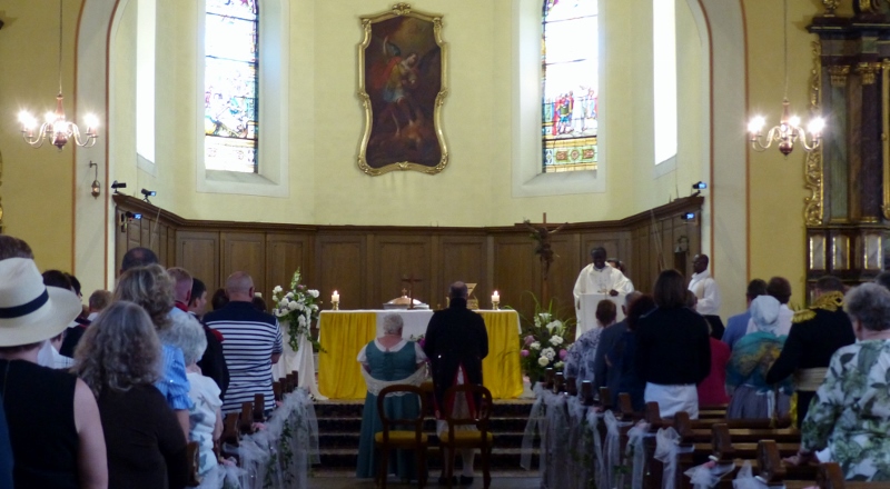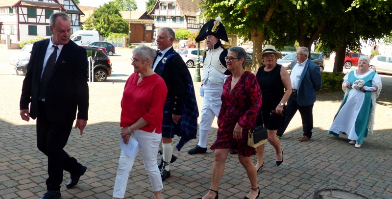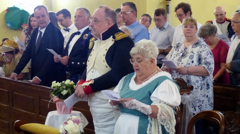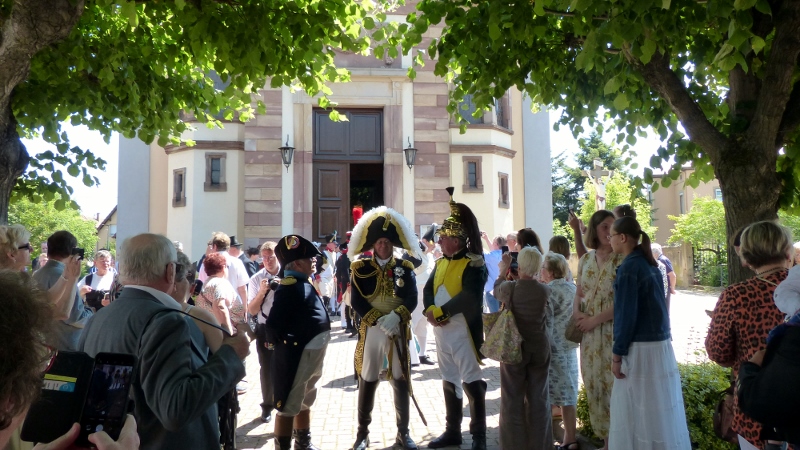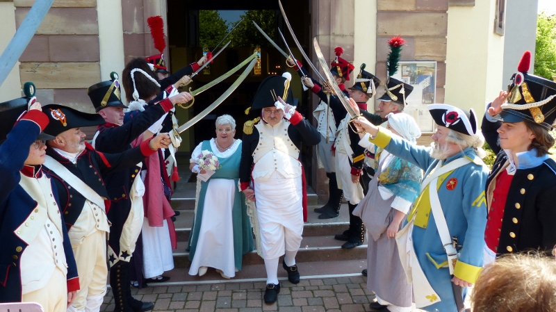 Il faudra désormais s’habituer à appeler la présidente de la chorale interparoissiale Sainte-Cécile Marianne Samok. Marianne Heitz et Jérôme Samok viennent en effet d’officialiser leur union de longue date pour accepter d’en faire le signe de l’amour miséricordieux, patient et indéfectible de Dieu à notre égard. Il se sont en effet mariés le samedi 10 juin en mairie puis à l’église de Reichstett. A cette occasion la chorale et Isabelle Schreiber, sa dirigeante, ont donné le meilleur d’elles-mêmes, tandis que l’association reichstettoise de reconstitution historique La Grande-armée d’alsace-Lorraine, dirgée par Jérôme, participait à la célébration en tenues d’apparat. Nos organistes Epiphane Hervé Akuetey-Akue et Noé Brencklé avaient eux aussi sorti les grands jeux. Dans son homélie le père Gabriel relevait le dévouement généreux de Marianne dans ses différentes responsabilités paroissiales et le souci des pauvres et des faibles de Jérôme. Après la haie d’honneur des soldats de l’Empereur tout ce beau monde s’est retrouvé au foyer Saint-Michel autour du pot de l’amitié.