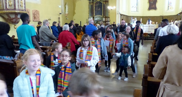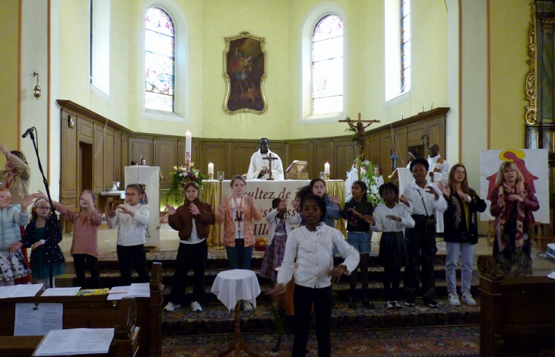 Enfin, le chant final a été gestué par les enfants face à l’assemblée, point d’orgue festif de cette célébration très vivante.