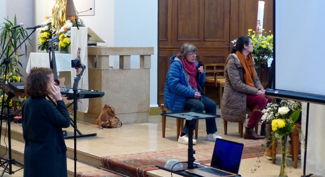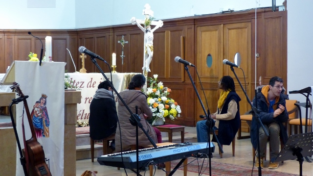Une partie des jeunes couples qui se préparent au mariage se sont retrouvés pour échanger, en présence du Père Gabriel, avec deux couples mariés de la paroisse. Ceux-ci ont témoigné de la place que Dieu tenait dans leur vie, et en particulier au sein de leur couple. Ensuite, après un temps convivial, les couples ont participé à la célébration de l’eucharistie où ils ont reçu une bénédiction de la part du Père René et du Père Gabriel. Dans son homélie, le Père René a insisté sur l’importance de l’écoute, écoute de Dieu et écoutes des autres, qualité qu’on souhaite à chacun des couples présents, en gage de leur bonheur conjugal et de la solidité de leur relation.