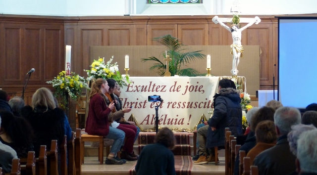 La messe du 30 avril a été animé par les enfants de l’ACE et la chorale gospel Dzidzole. Les enfants ont salué l’assemblée en même temps qu’une projection de photos d’activités qu’ils réalisent tout au long de l’année. Celles-ci étaient projetées par Jean-Pierre, notre spécialiste en la matière.