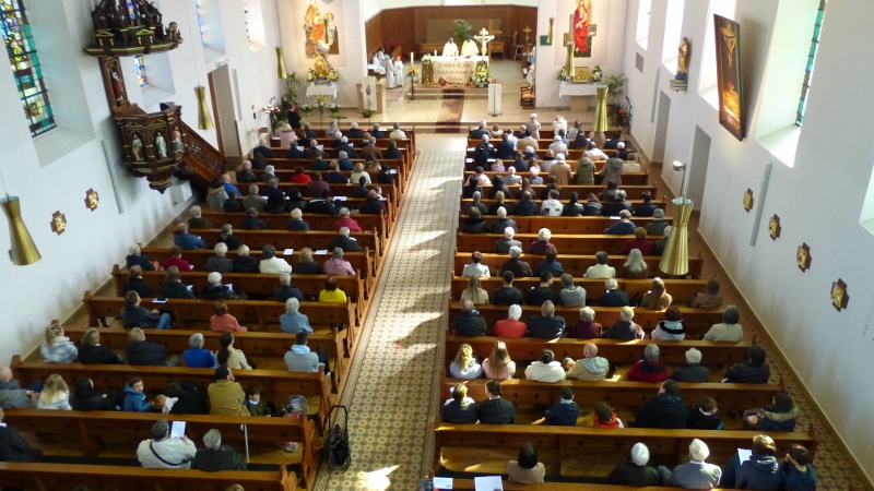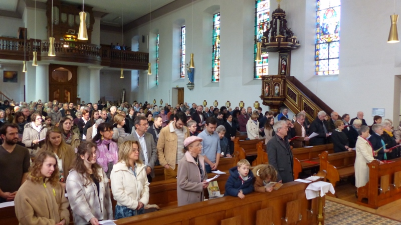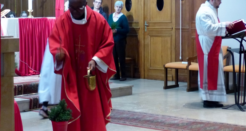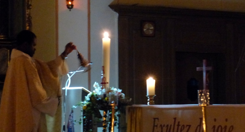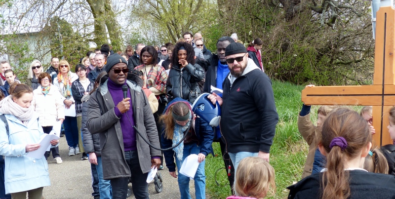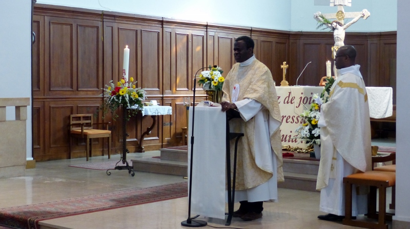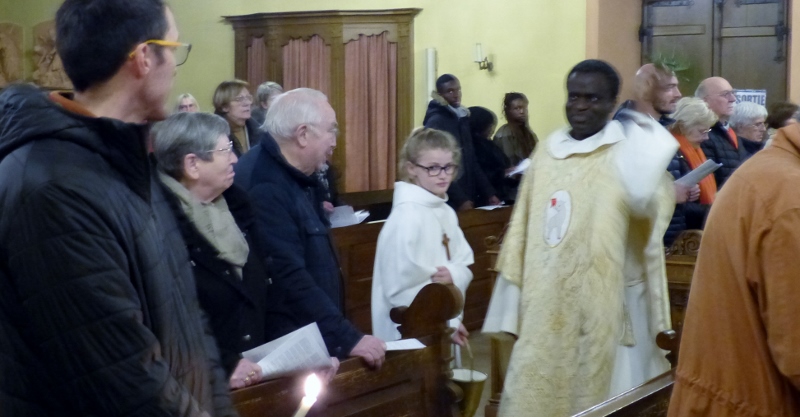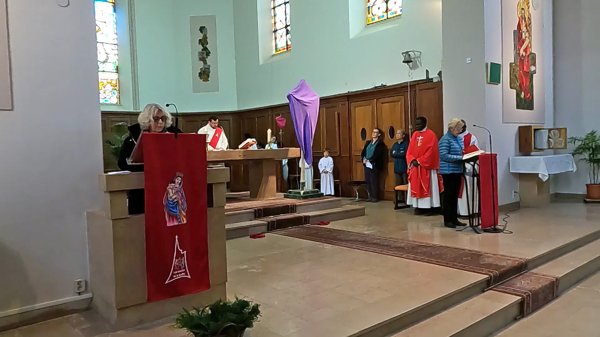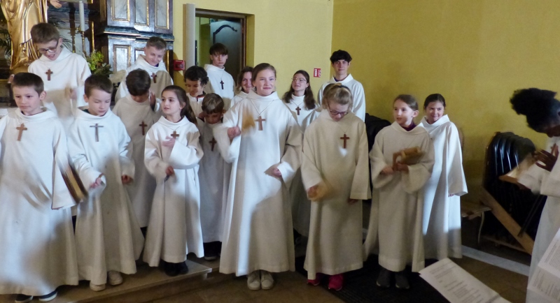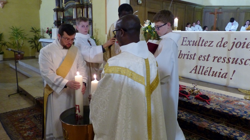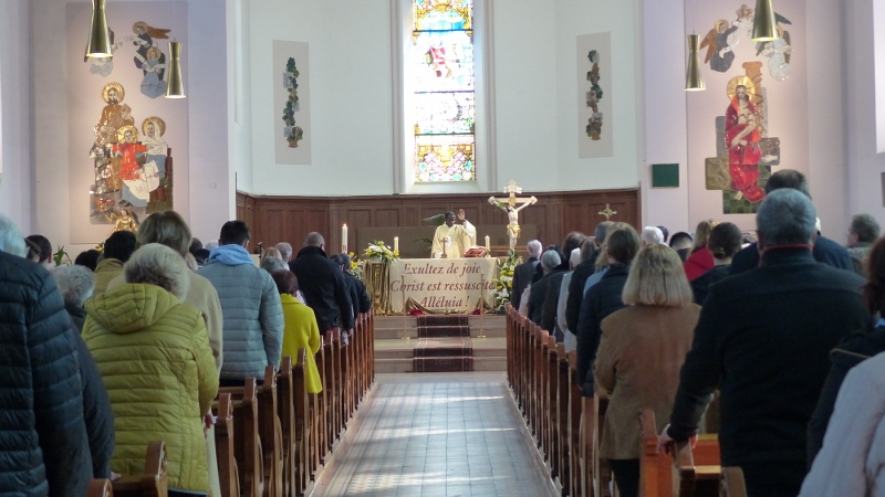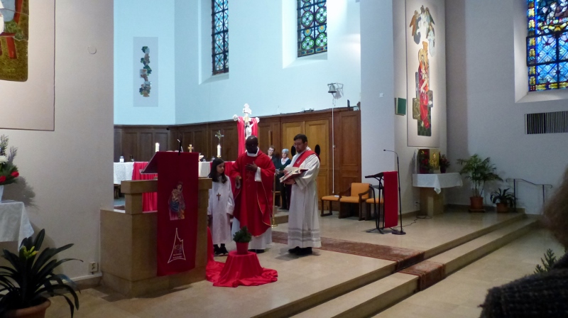 La messe des Rameaux et de la Passion a été présidée le samedi soir à Souffelweyersheim par l’abbé René Awoumé assisté de notre diacre Ephraïm avec au chant la chorale des Coeurs chantants. Le dimanche c’est notre curé l’abbé Gabriel Tchonang qui a officié entouré des diacres Ephraïm et Michel, le papa de notre secrétaire paroissiale Marie Martin, la partie musicale étant assurée par la chorale Sainte-Cécile.