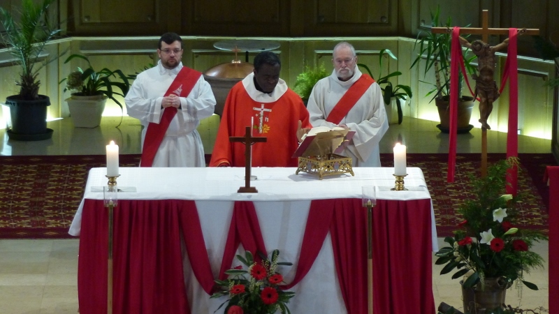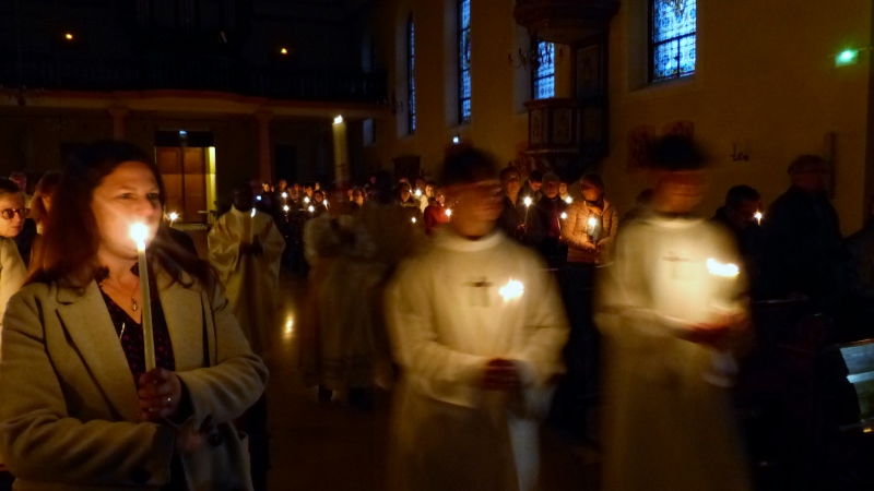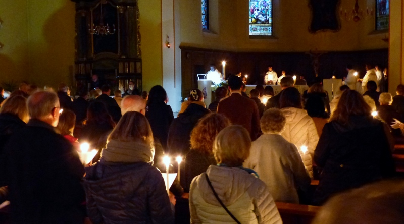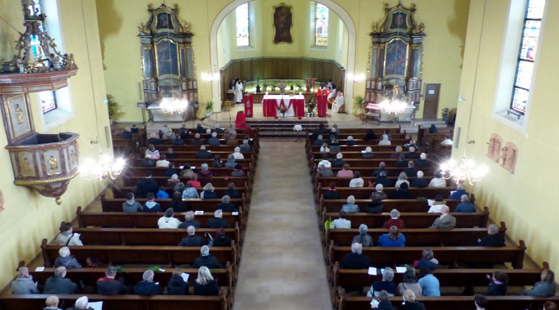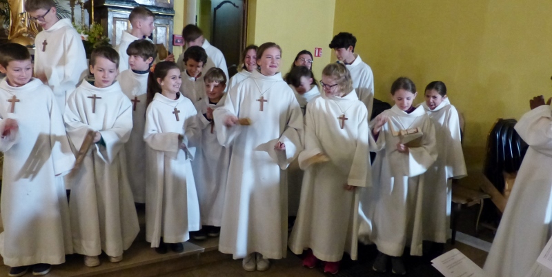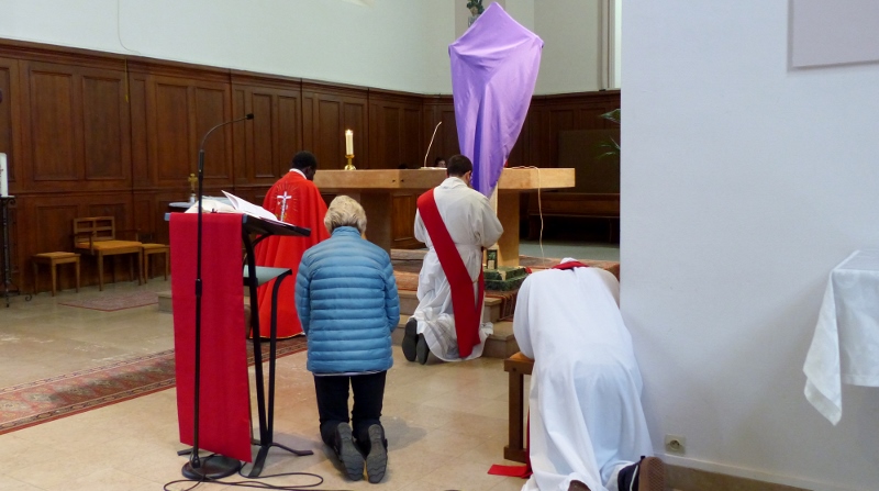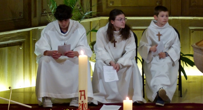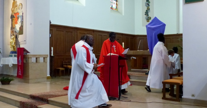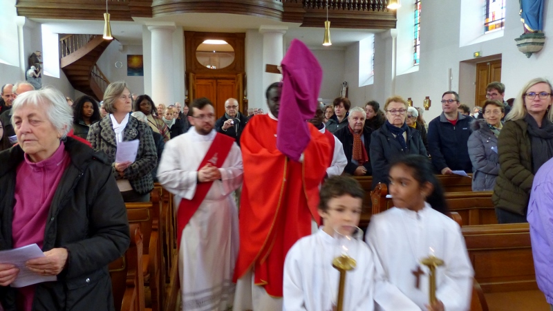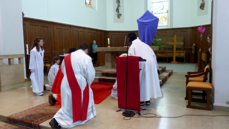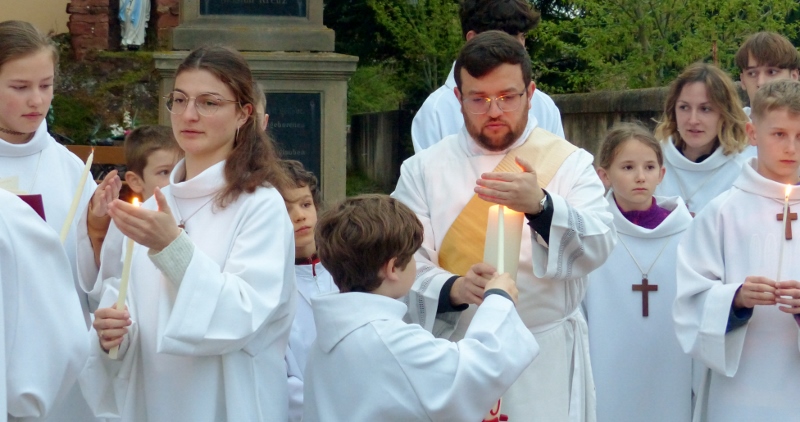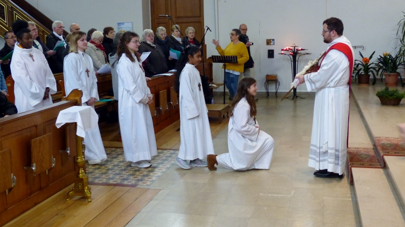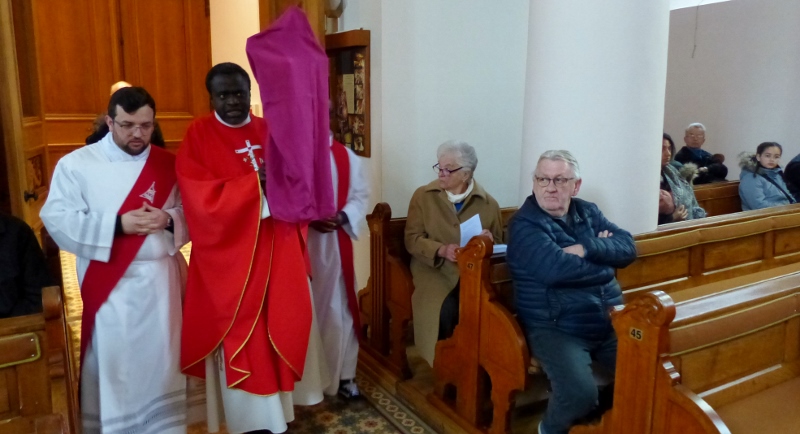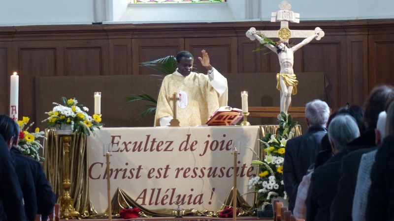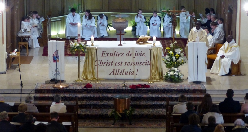 La messe des Rameaux et de la Passion a été présidée le samedi soir à Souffelweyersheim par l’abbé René Awoumé assisté de notre diacre Ephraïm avec au chant la chorale des Coeurs chantants. Le dimanche c’est notre curé l’abbé Gabriel Tchonang qui a officié entouré des diacres Ephraïm et Michel, le papa de notre secrétaire paroissiale Marie Martin, la partie musicale étant assurée par la chorale Sainte-Cécile.