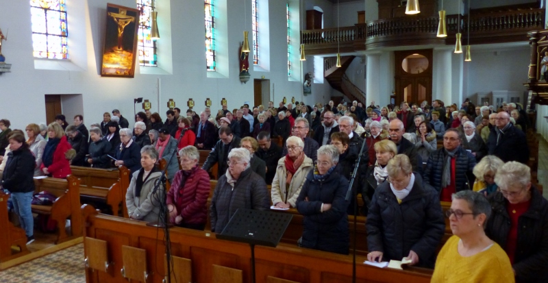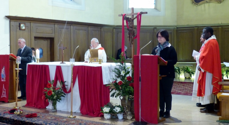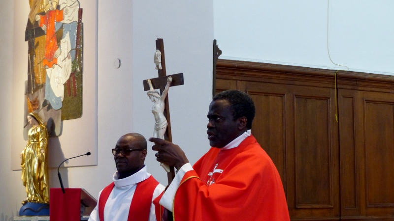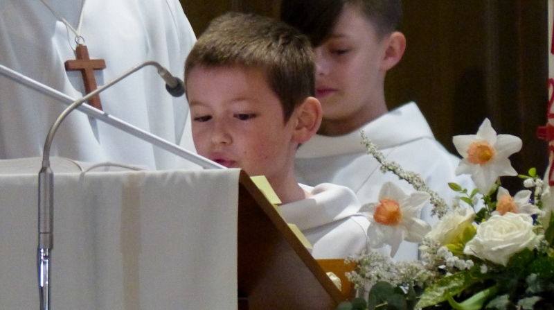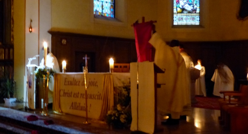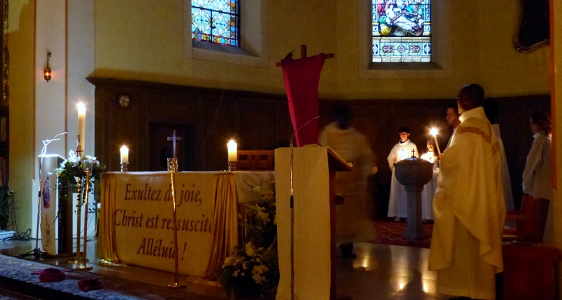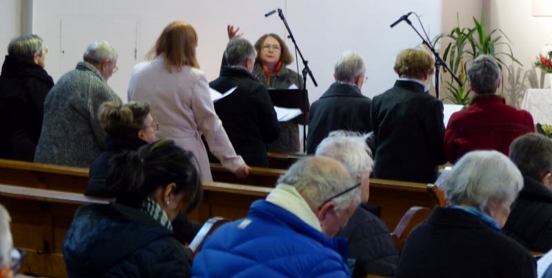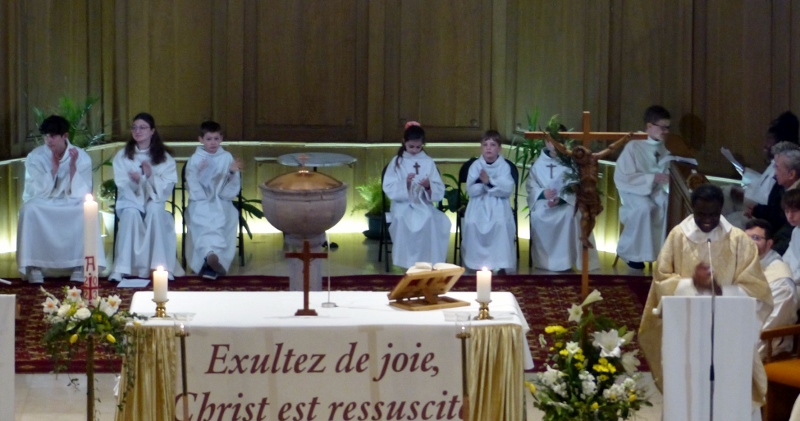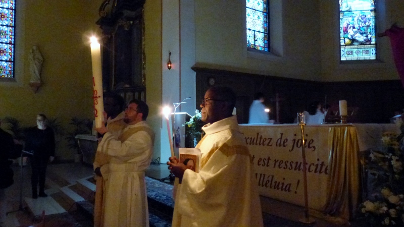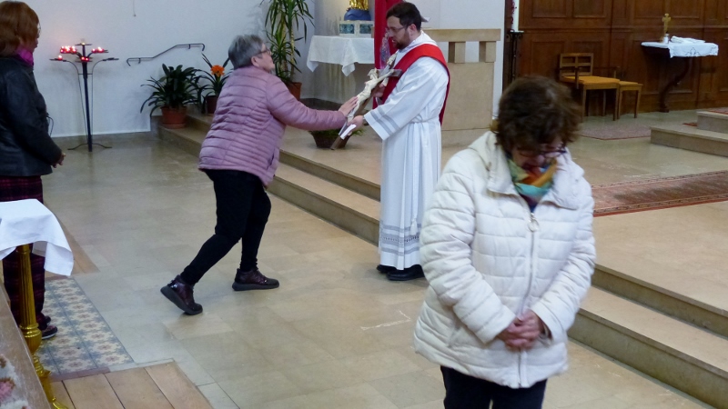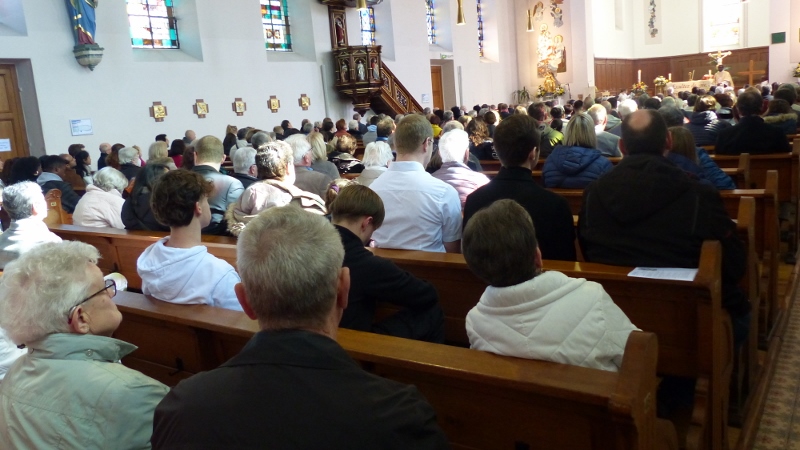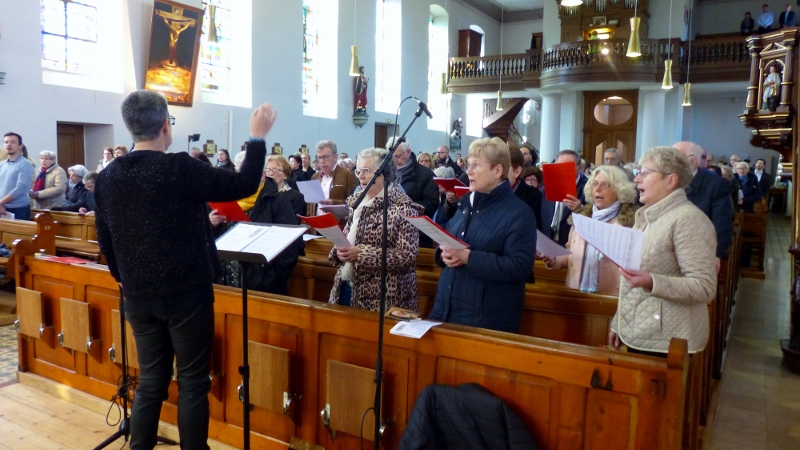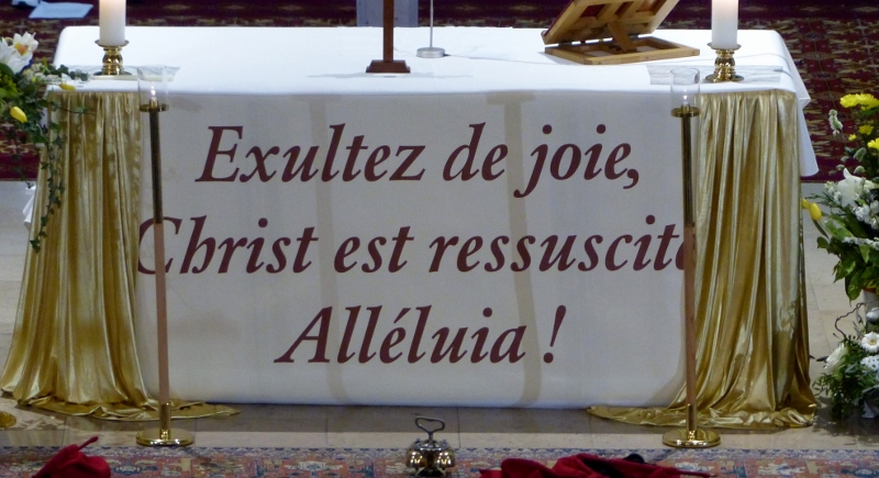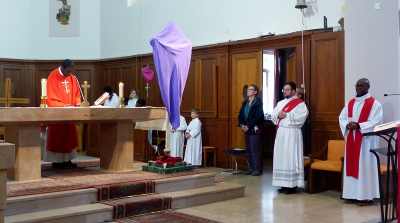 La messe des Rameaux et de la Passion a été présidée le samedi soir à Souffelweyersheim par l’abbé René Awoumé assisté de notre diacre Ephraïm avec au chant la chorale des Coeurs chantants. Le dimanche c’est notre curé l’abbé Gabriel Tchonang qui a officié entouré des diacres Ephraïm et Michel, le papa de notre secrétaire paroissiale Marie Martin, la partie musicale étant assurée par la chorale Sainte-Cécile.