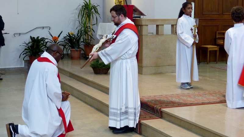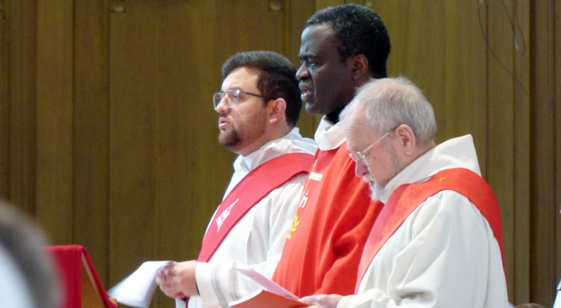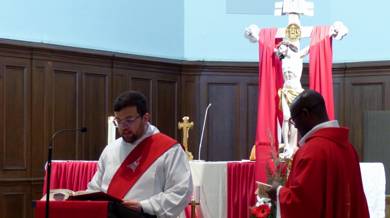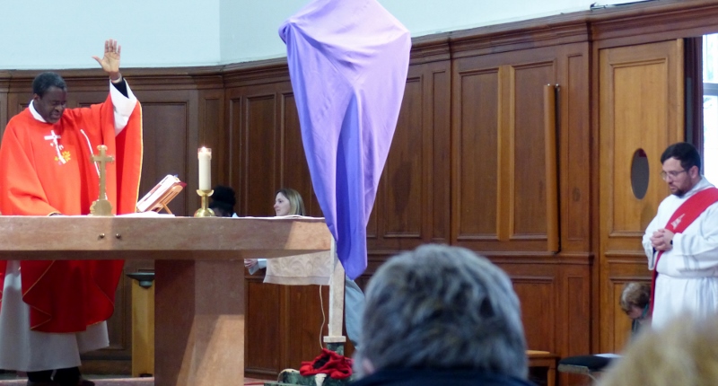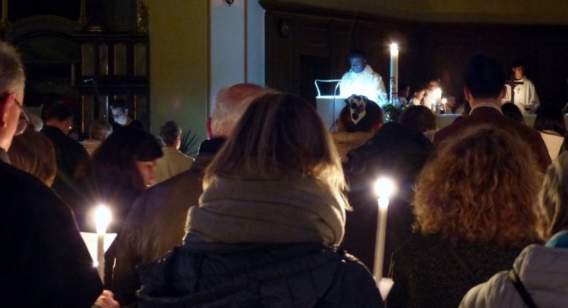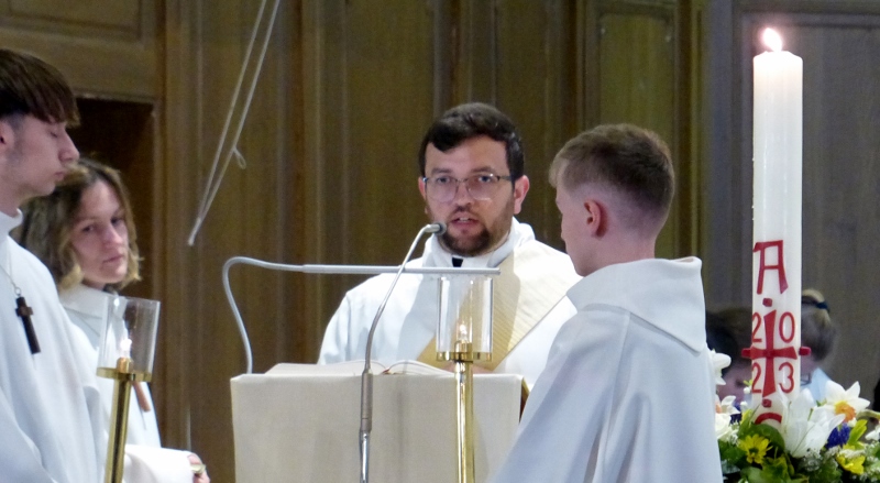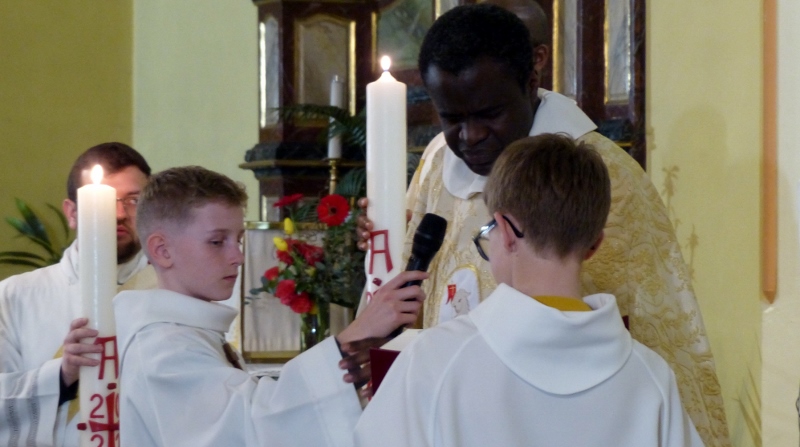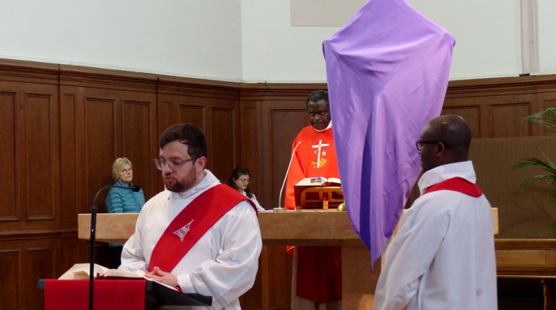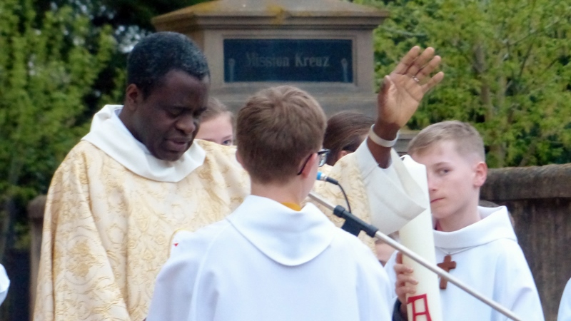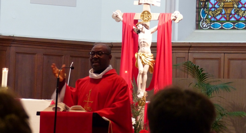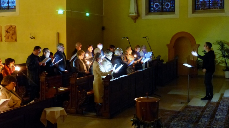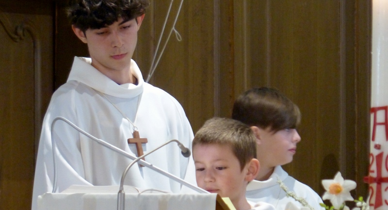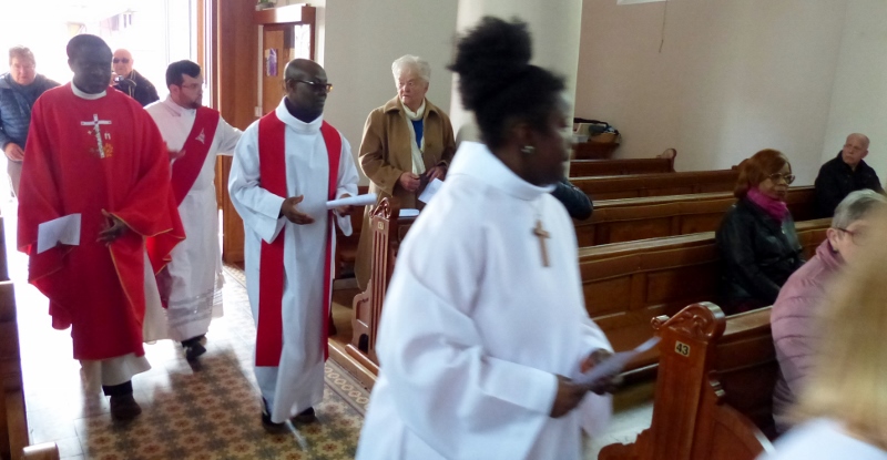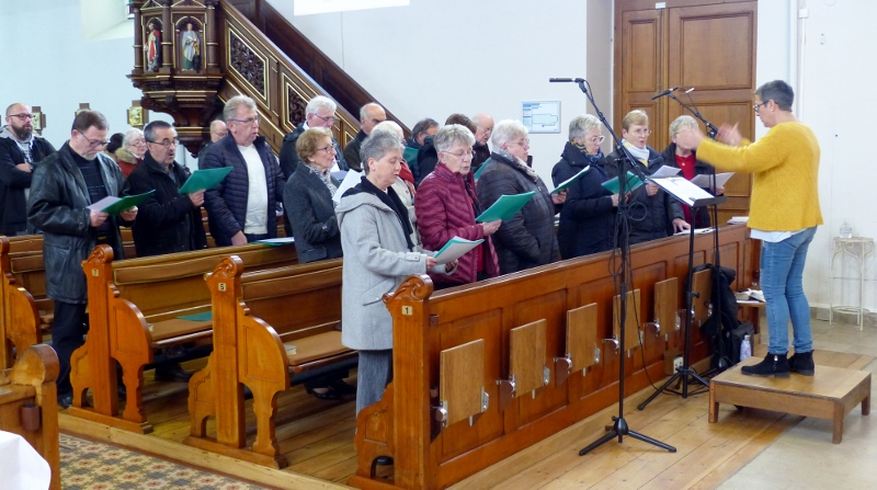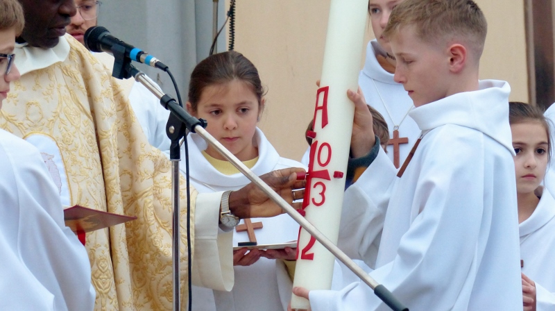 La messe des Rameaux et de la Passion a été présidée le samedi soir à Souffelweyersheim par l’abbé René Awoumé assisté de notre diacre Ephraïm avec au chant la chorale des Coeurs chantants. Le dimanche c’est notre curé l’abbé Gabriel Tchonang qui a officié entouré des diacres Ephraïm et Michel, le papa de notre secrétaire paroissiale Marie Martin, la partie musicale étant assurée par la chorale Sainte-Cécile.