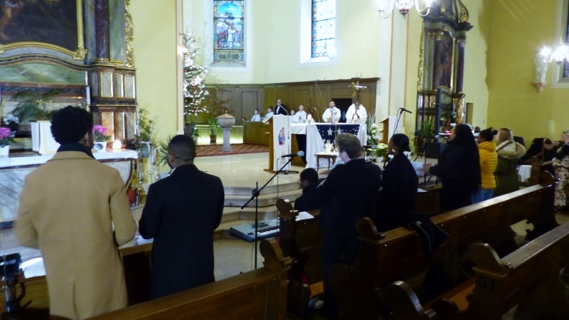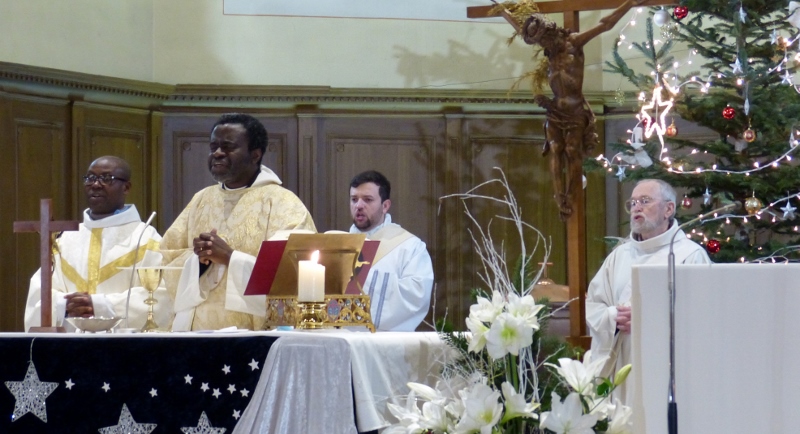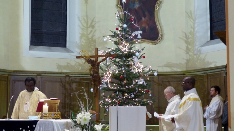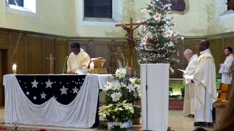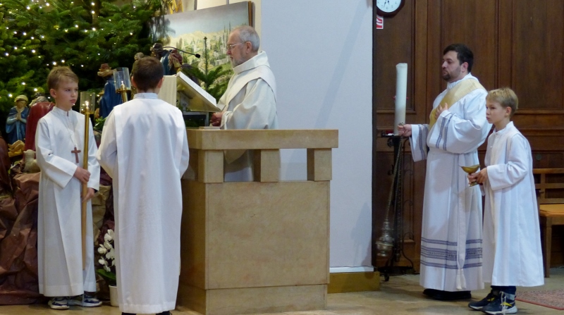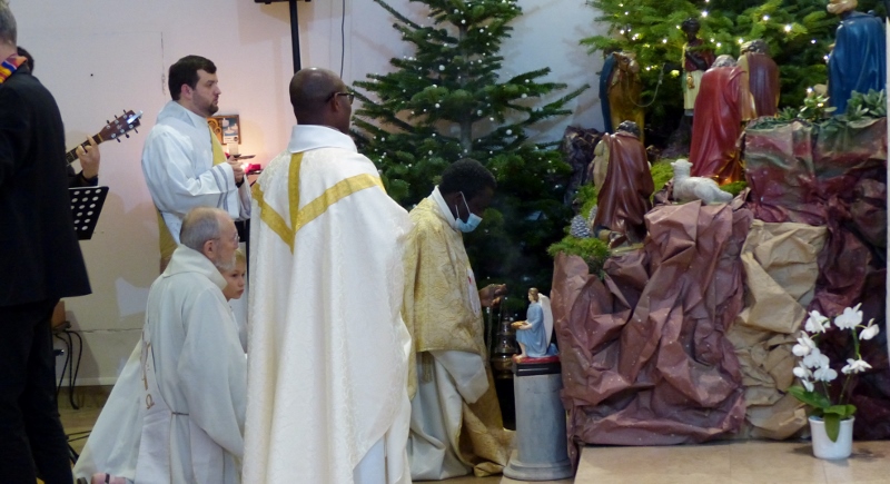 Nos prêtres et diacres officiaient tous de nouveau à la messe du jour de Noël, célébrée à Souffel. A la chorale Sainte-Cécile s’était joint le choeur des Séraphins.