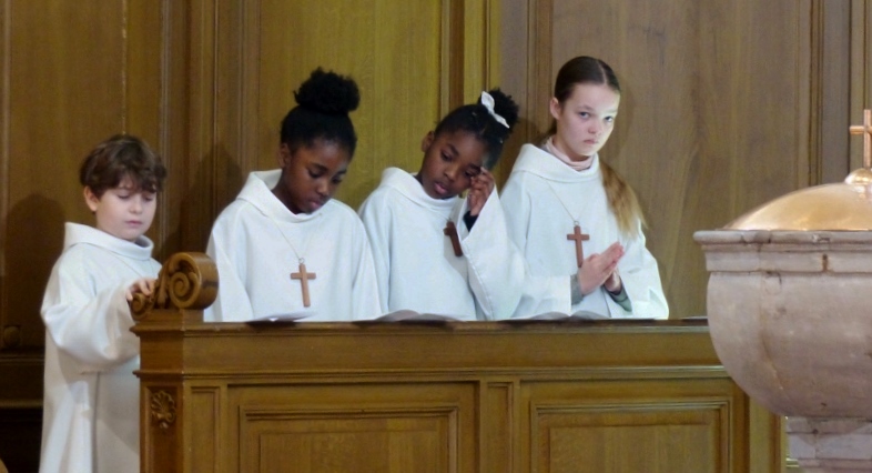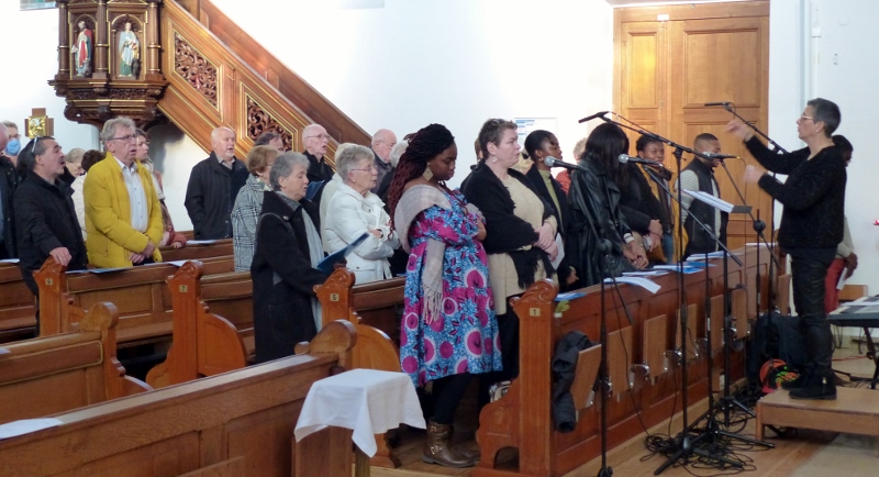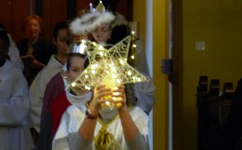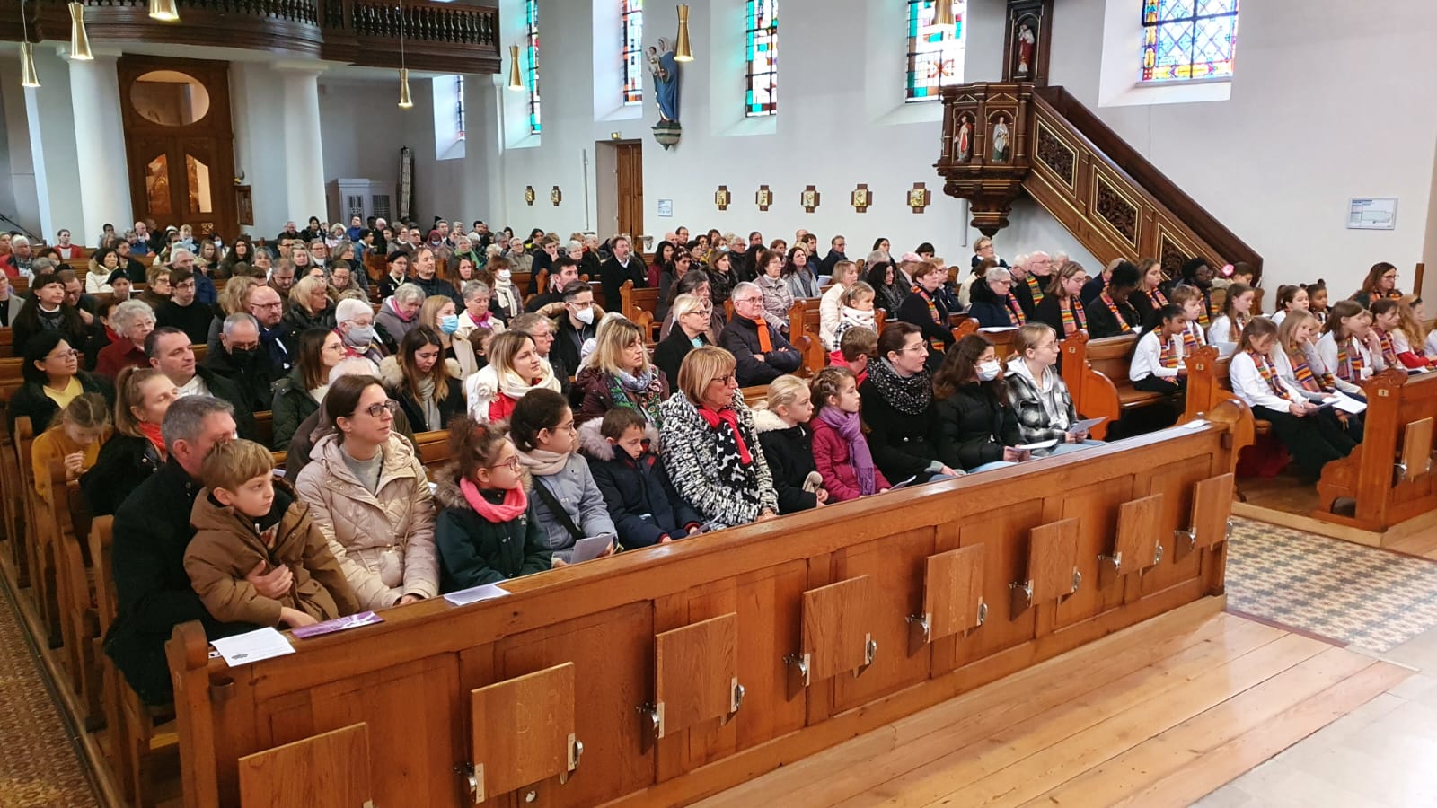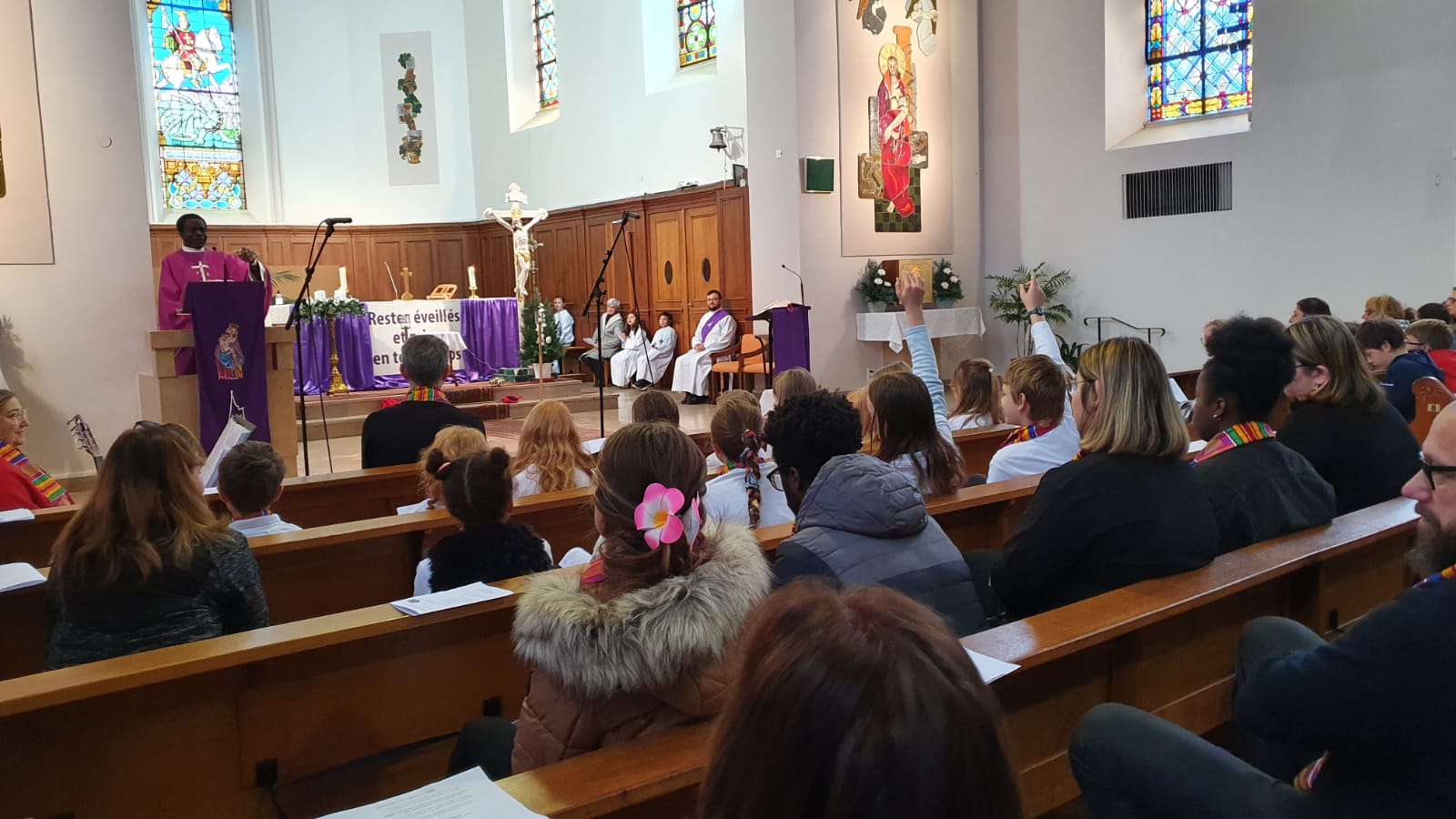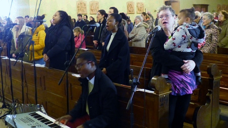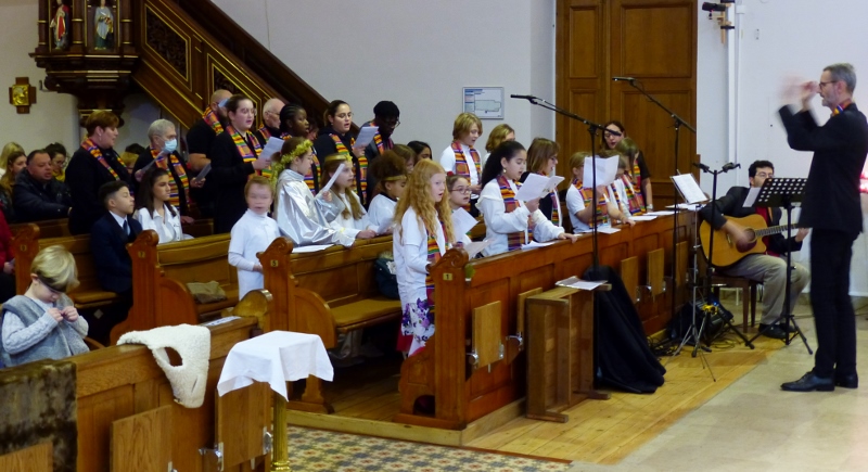 La messe dite « du retour des mages » a été célébrée le dimanche de l’Epiphanie à Reichstett. La procession d’entrée, avec trois garçons costumés en rois mages, a permis de déposer une étoile lumineuse devant l’autel. La chorale des Séraphins renforcée d’un djembé (tambour africain) a animé avec beaucoup d’entrain la célébration. La procession des offrandes a été faite par des enfants.