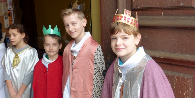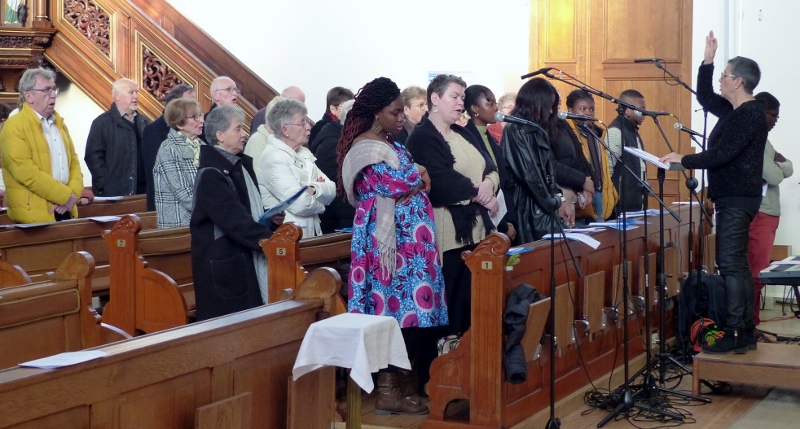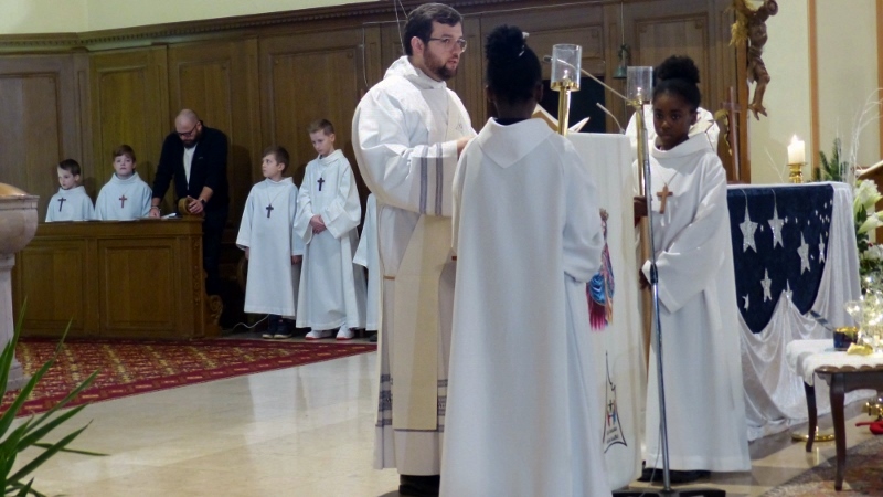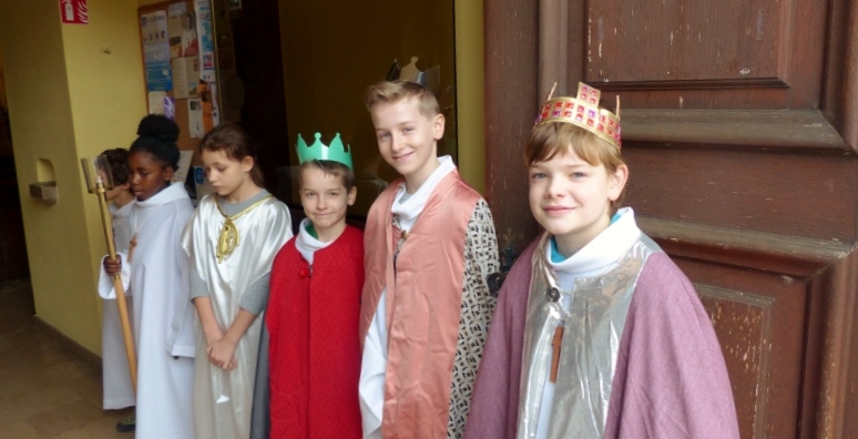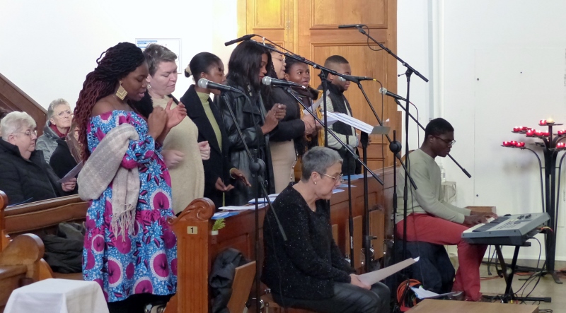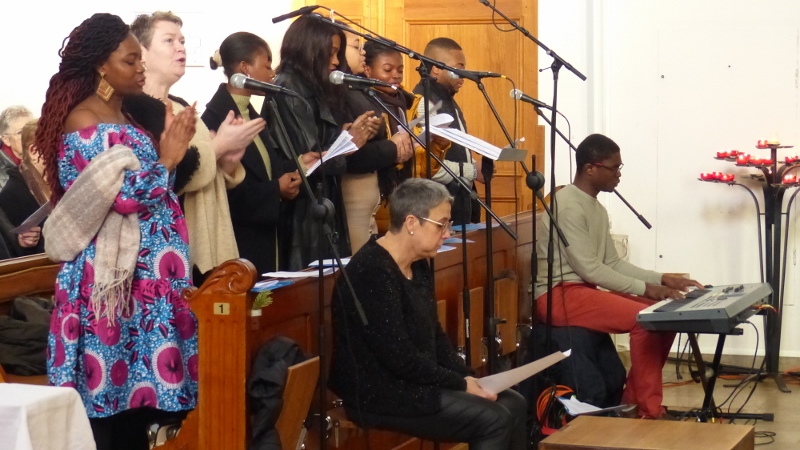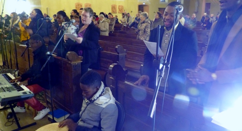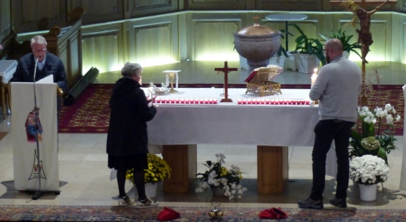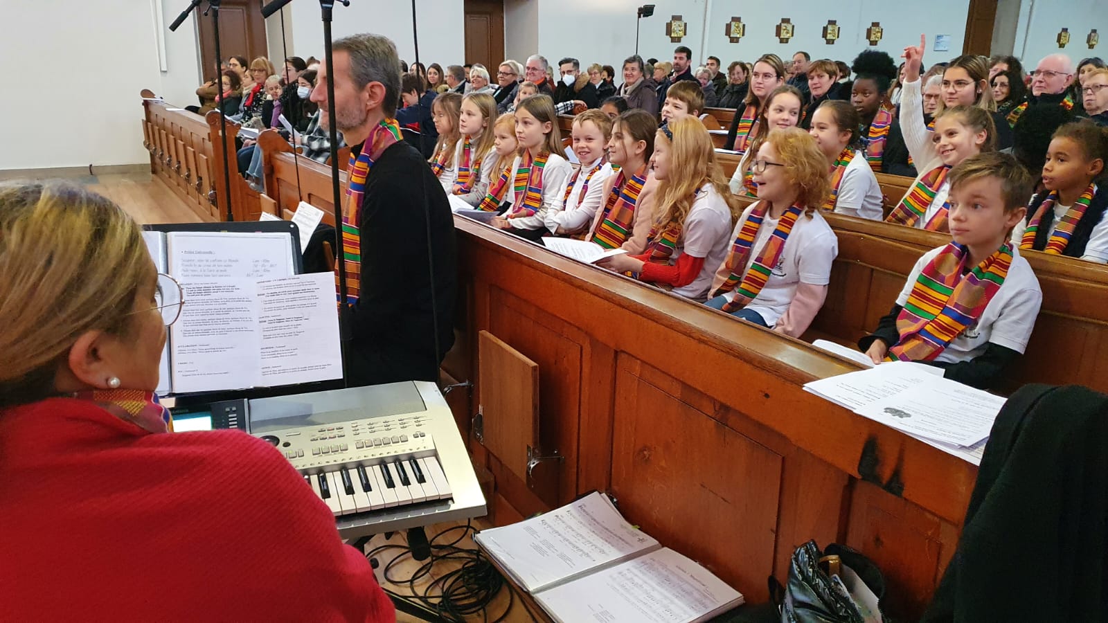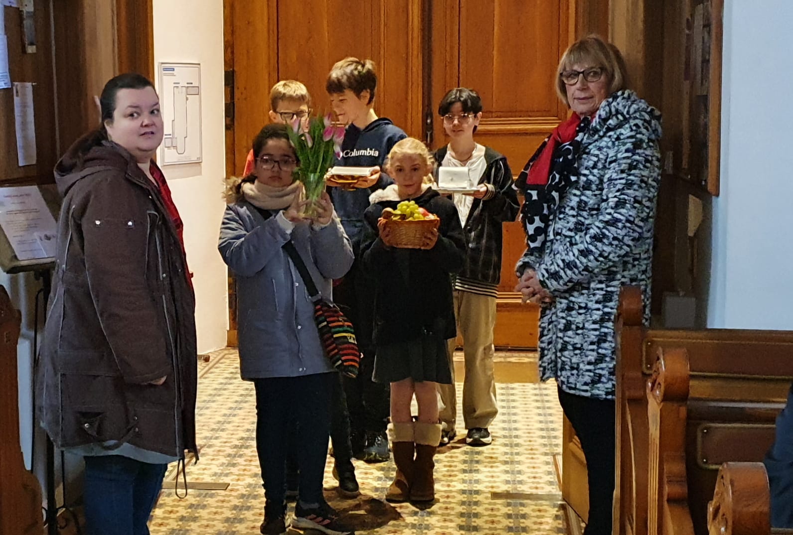 La messe dite « du retour des mages » a été célébrée le dimanche de l’Epiphanie à Reichstett. La procession d’entrée, avec trois garçons costumés en rois mages, a permis de déposer une étoile lumineuse devant l’autel. La chorale des Séraphins renforcée d’un djembé (tambour africain) a animé avec beaucoup d’entrain la célébration. La procession des offrandes a été faite par des enfants.