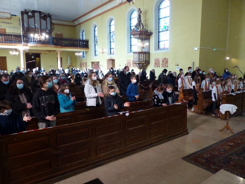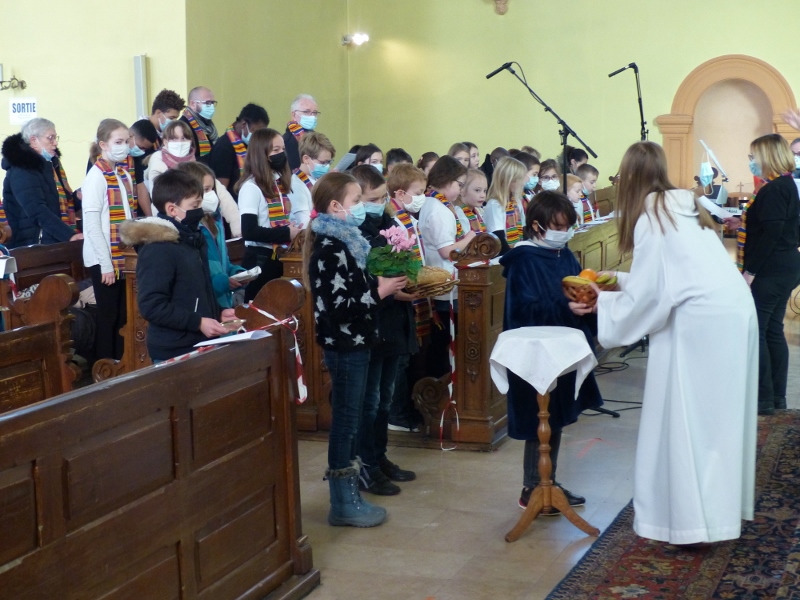 La messe mensuelle des familles a été animée en l’église Saint-Michel de Reichstett par la chorale des enfants D’Haertzengele. L’abbé Gabriel a rappelé à cette occasion que la messe des Cendres d’entrée en Carême de ce mercredi 17 février sera célébrée dans les deux paroisses à 16h30 : à Souffel pour les familles, à Reichstett pour les adultes avec la chorale Sainte-Cécile.