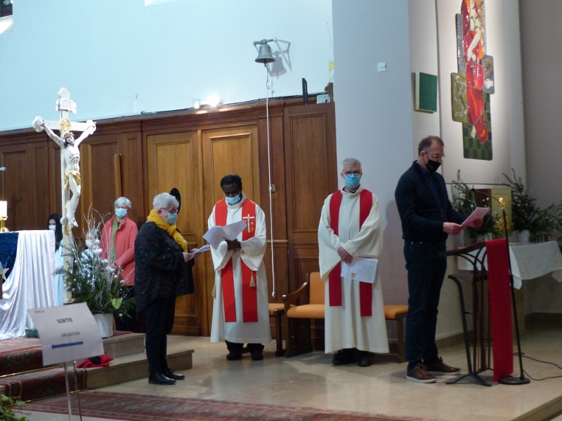 La célébration annuelle de la semaine de prière pour l’unité des chrétiens prévue cette année initialement à l’église Saint-Luc de Souffel, a eu lieu finalement pour des raisons de distanciation sanitaire en l’église Saint-Georges, plus vaste. Préparée par la communauté religieuse féminine protestante de Grandchamp, elle a été conçue comme une suite de trois veilles comportant chacune un psaume, un répons, une lecture biblique et une prière d’intercession. Les paroissiens catholiques et luthériens s’étaient partagé les rôles et le déroulement de la célébration a été pénétré de ferveur. C’est Daniel, le nouveau pasteur de la communauté protestante, qui a assuré la prédication sur le livre de la « Révélation », communément aussi appelé Apocalypse.