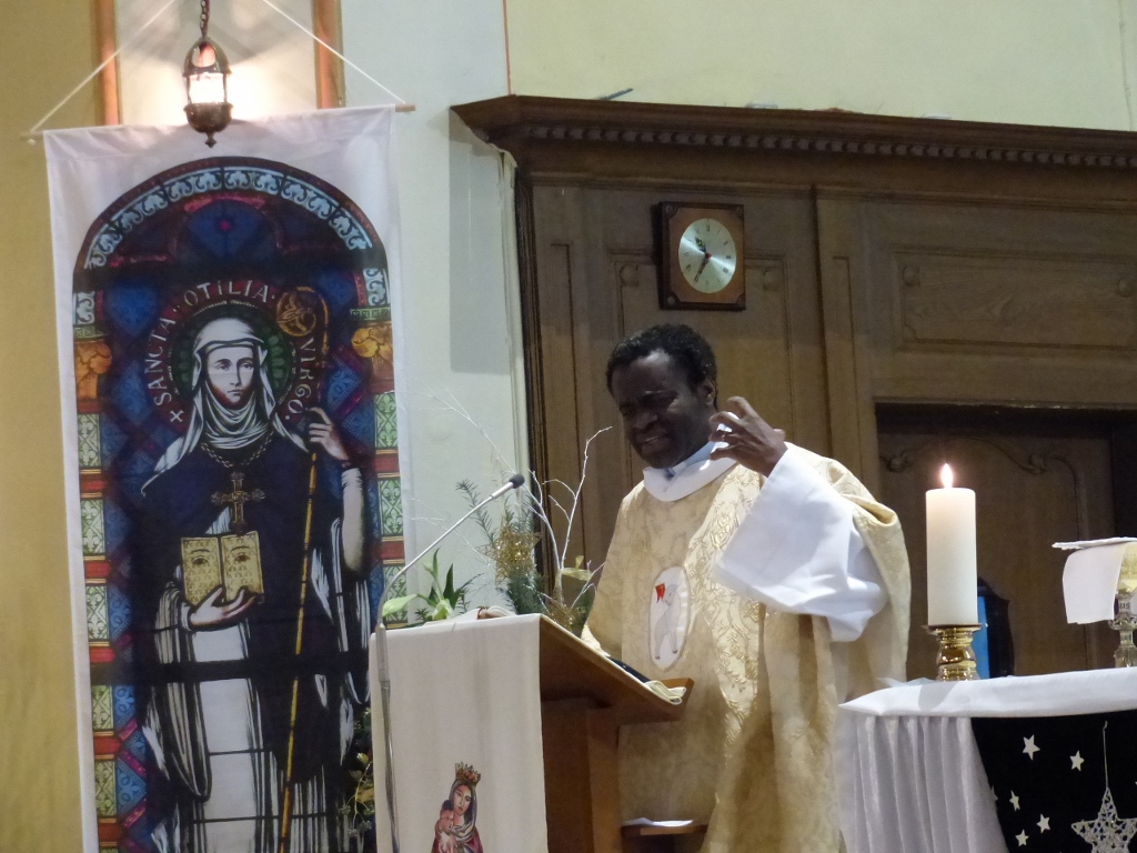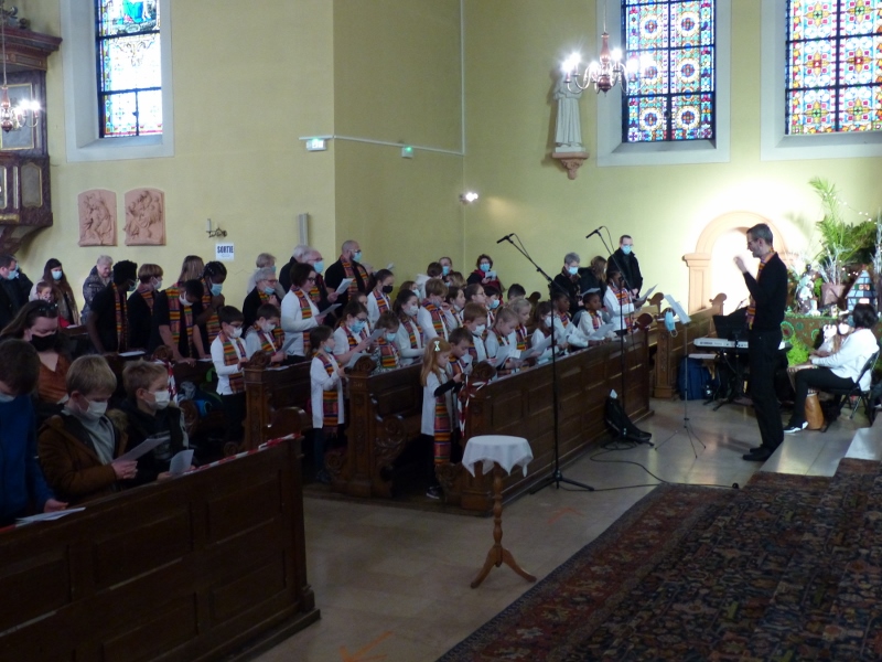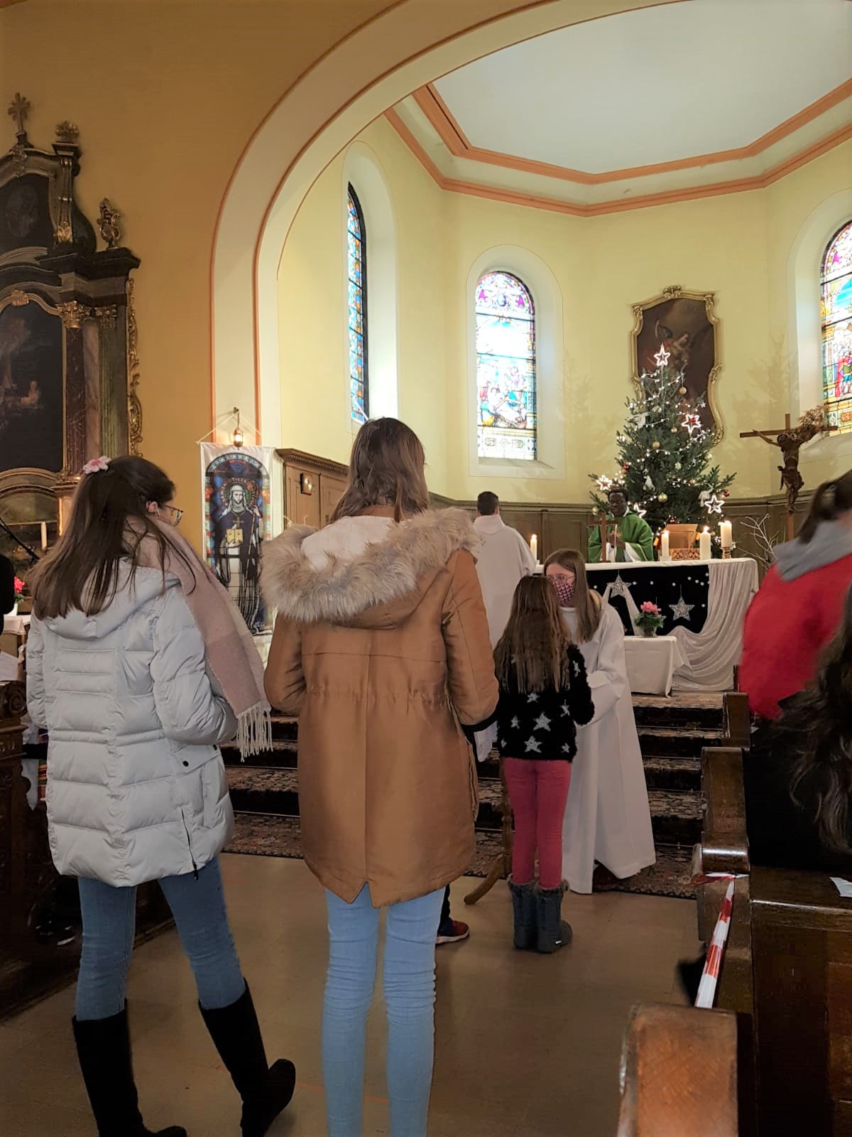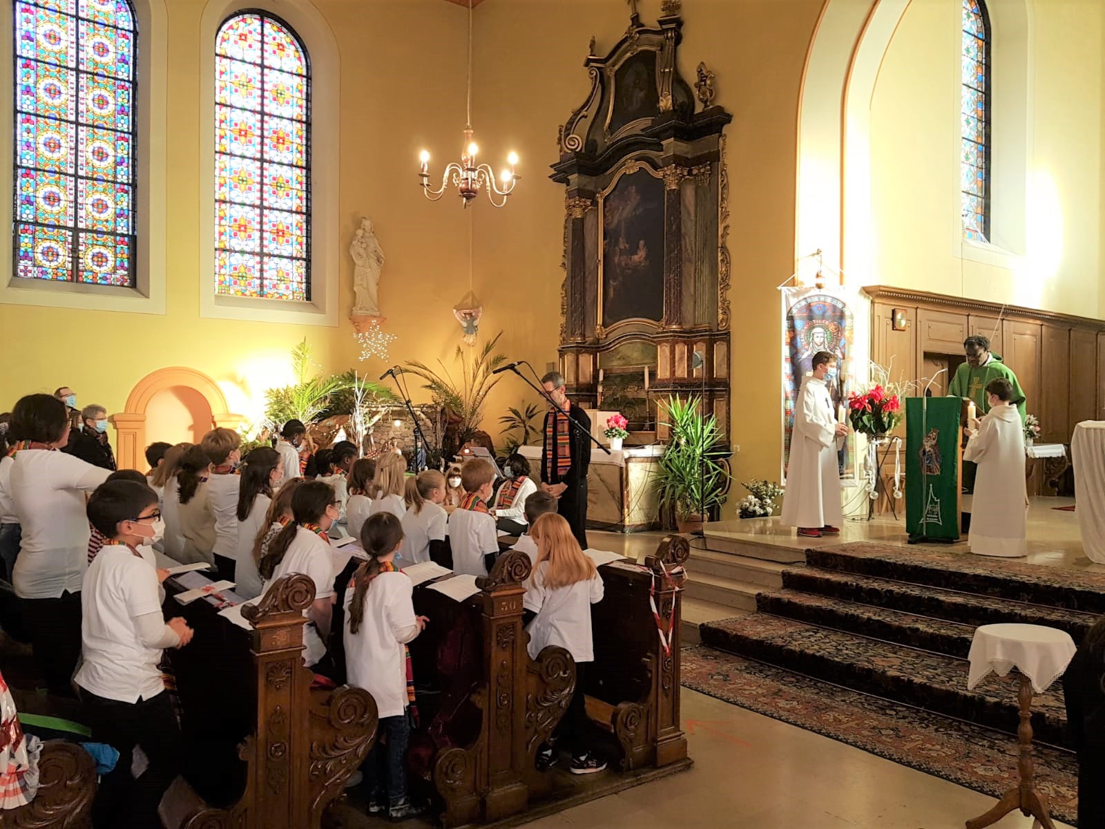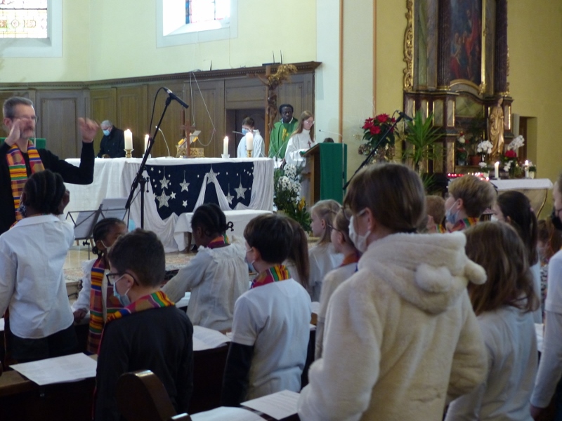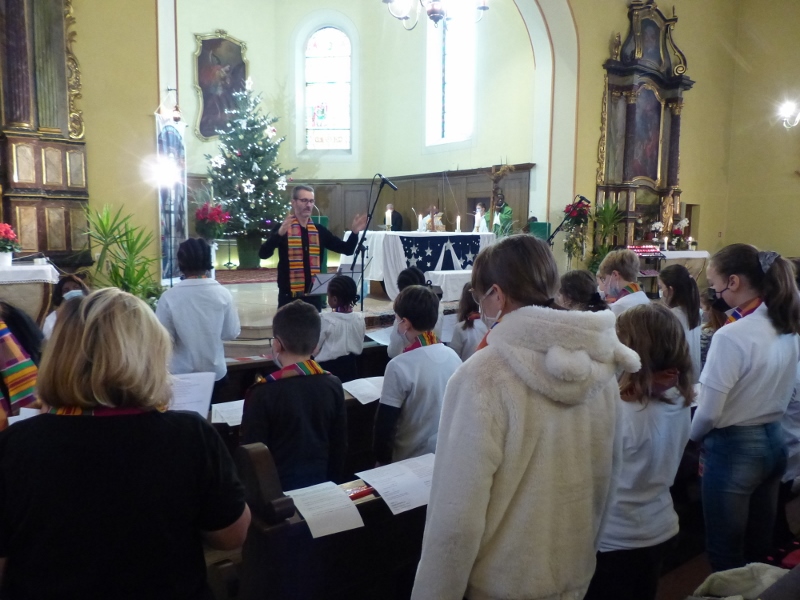 La première messe des familles de l’année, qui était aussi la seule messe de ce dimanche puisque le samedi avait lieu la célébration oecuménique de la semaine de prière pour l’unité, a réjoui le coeur du père Gabriel tout heureux de voir revenir les jeunes et les familles. Au premier rang des jeunes il y avait la chorale D’Haertzengele qui a animé la messe de tout son coeur. A la fin de la célébration a été présentée la nouvelle sacristaine Brigittte.