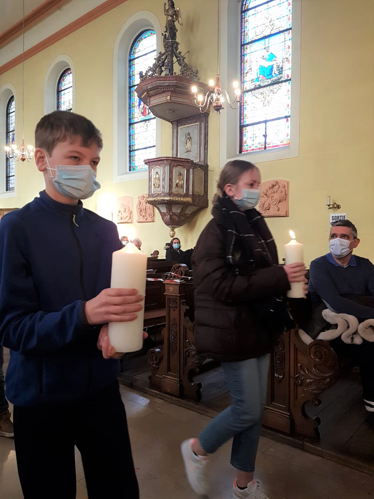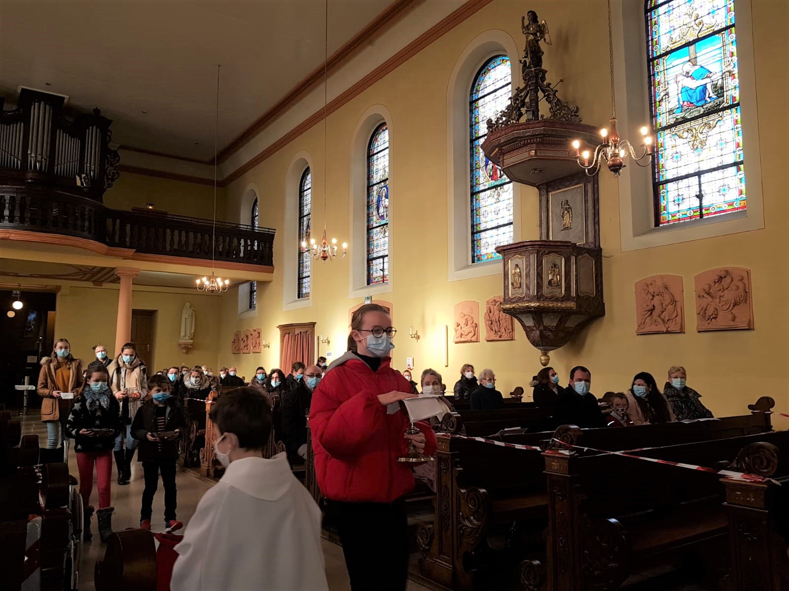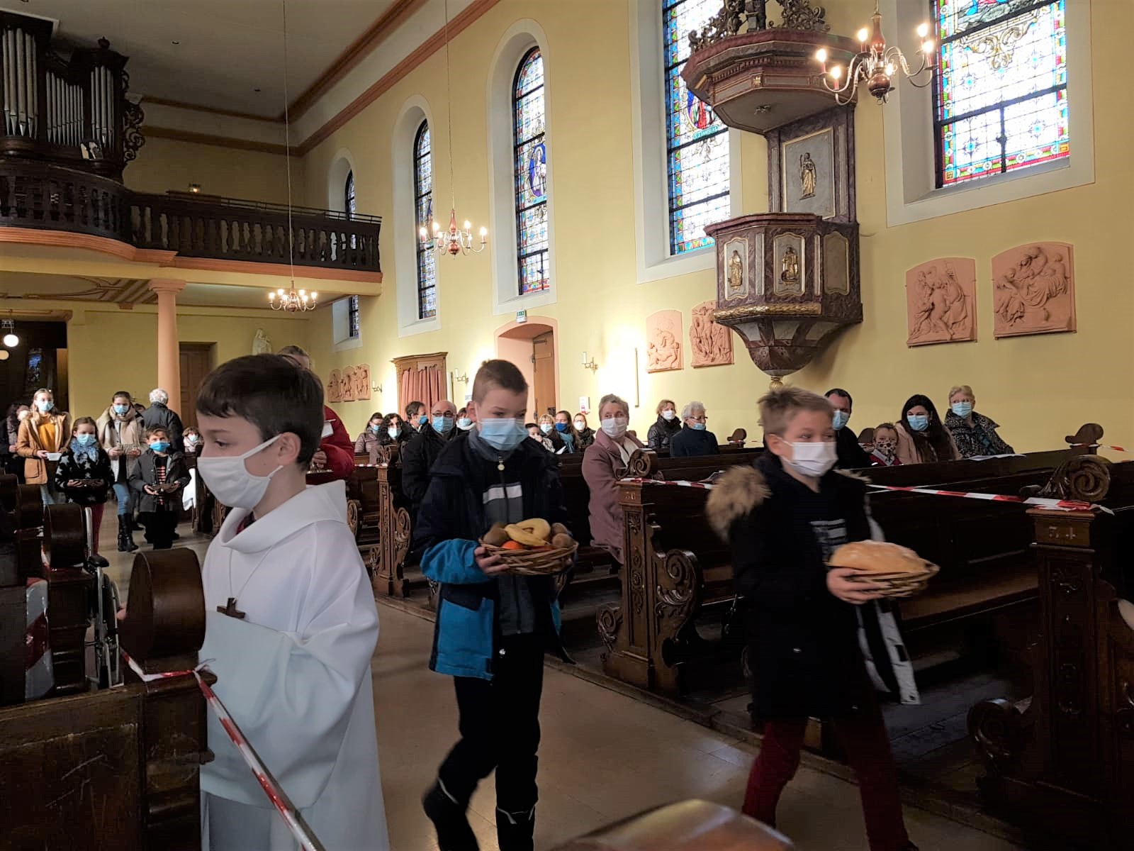 La première messe des familles de l’année, qui était aussi la seule messe de ce dimanche puisque le samedi avait lieu la célébration oecuménique de la semaine de prière pour l’unité, a réjoui le coeur du père Gabriel tout heureux de voir revenir les jeunes et les familles. Au premier rang des jeunes il y avait la chorale D’Haertzengele qui a animé la messe de tout son coeur. A la fin de la célébration a été présentée la nouvelle sacristaine Brigittte.