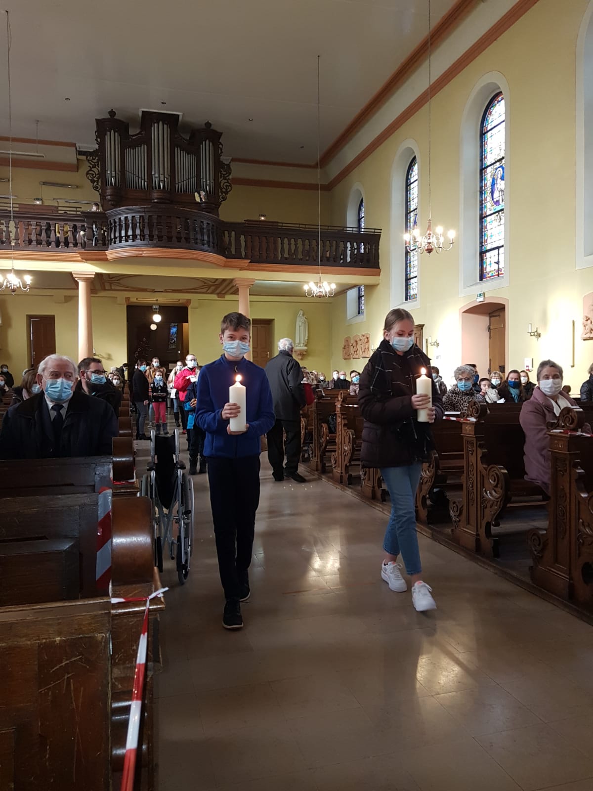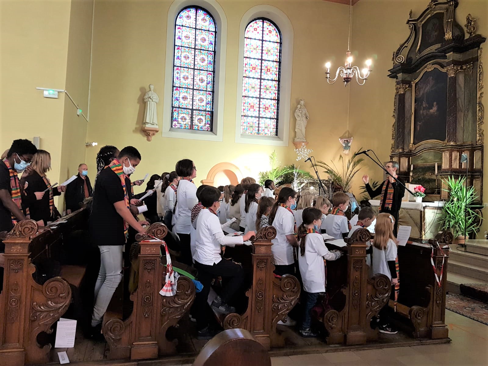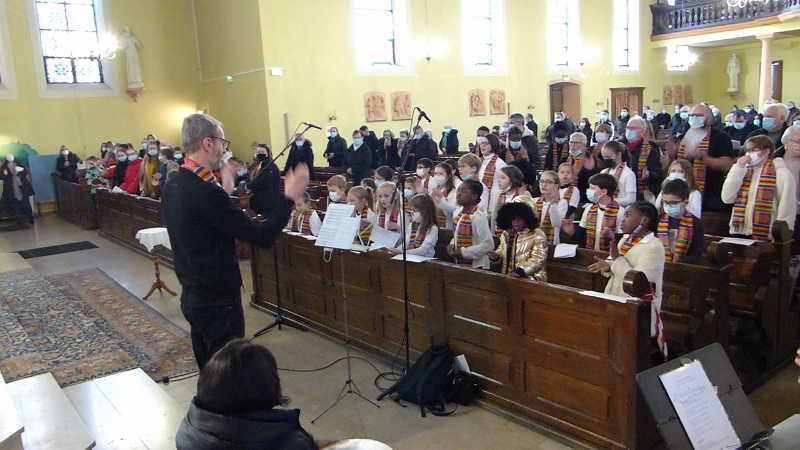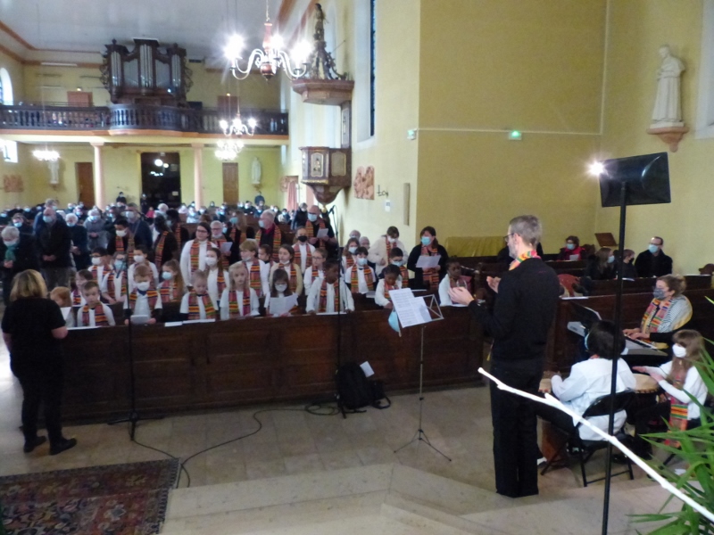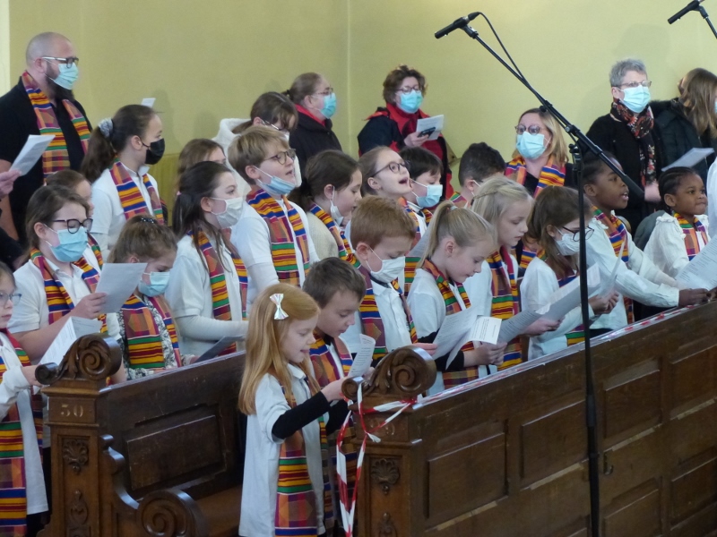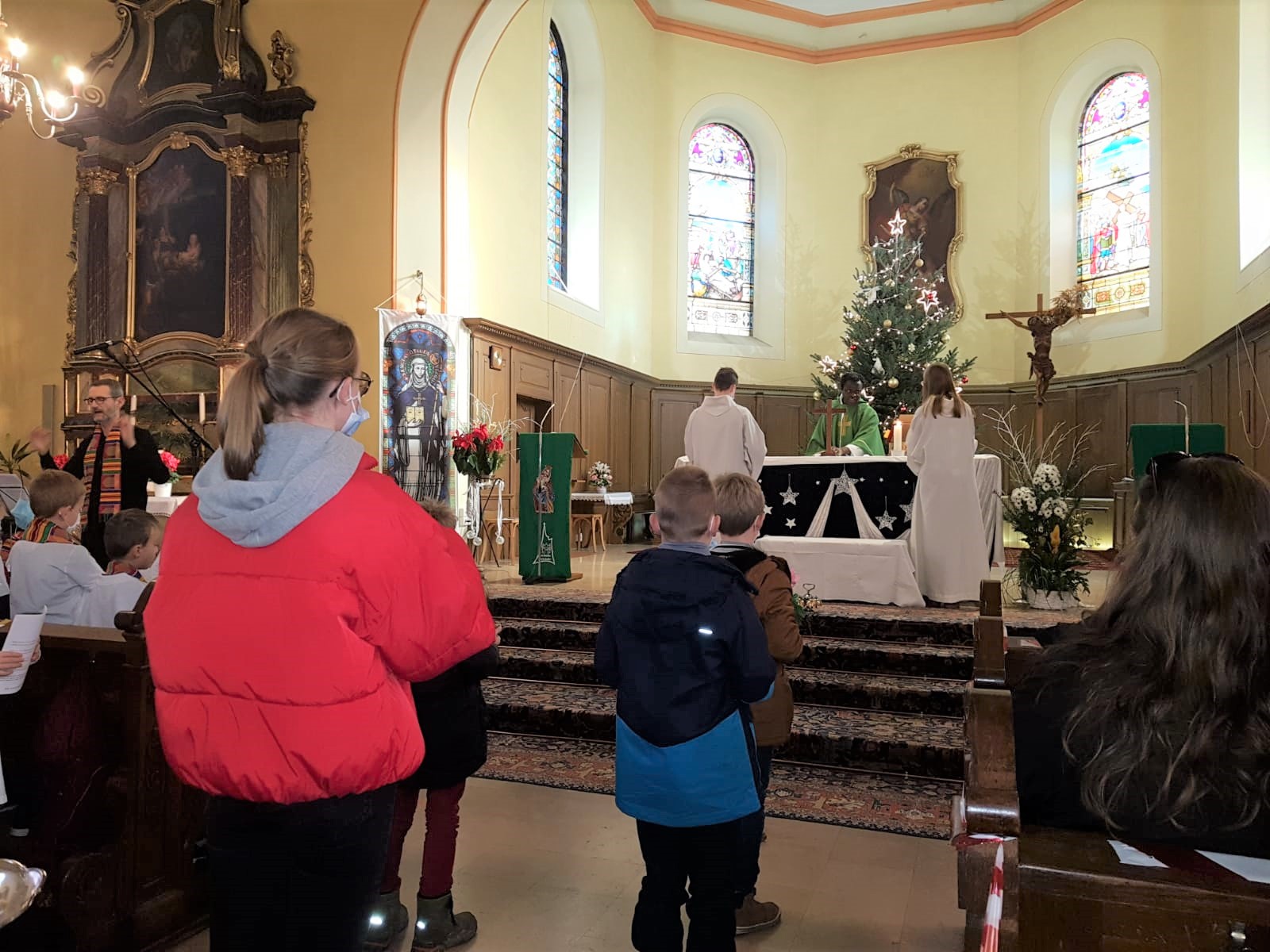 La première messe des familles de l’année, qui était aussi la seule messe de ce dimanche puisque le samedi avait lieu la célébration oecuménique de la semaine de prière pour l’unité, a réjoui le coeur du père Gabriel tout heureux de voir revenir les jeunes et les familles. Au premier rang des jeunes il y avait la chorale D’Haertzengele qui a animé la messe de tout son coeur. A la fin de la célébration a été présentée la nouvelle sacristaine Brigittte.